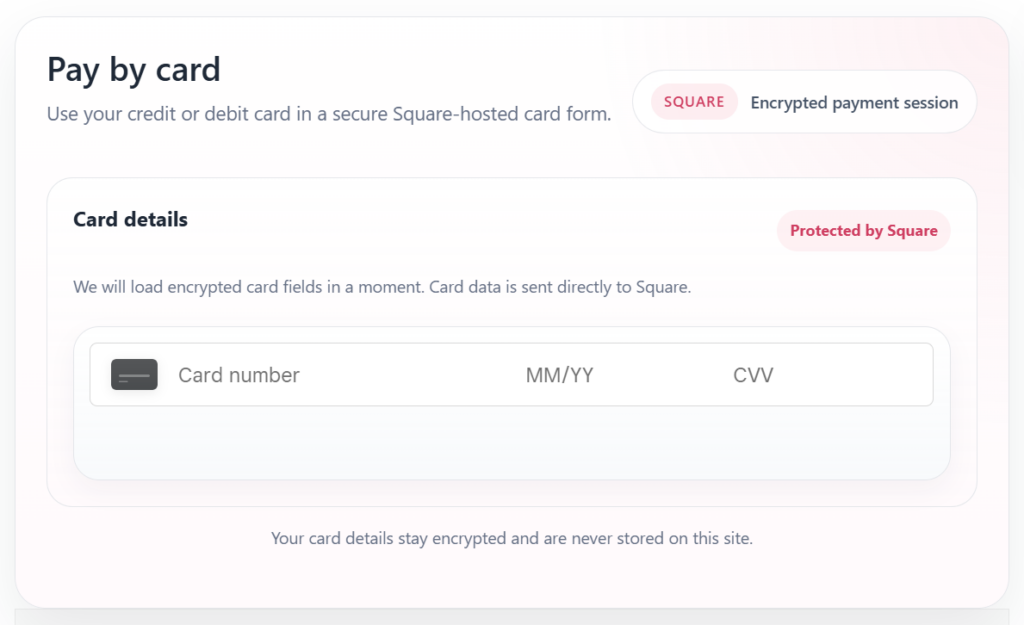 * Improved: Enhanced Square checkout shell with secure loader/status states for card and wallet methods