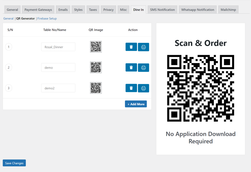 RestroPress DineIn introduces Table Ordering System in Online Food Ordering System. It gives your customers the safest way to order and hang out together. It prevents them from any contact. Customers can easily Scan the QR Code on their table and access the menu on their devices.