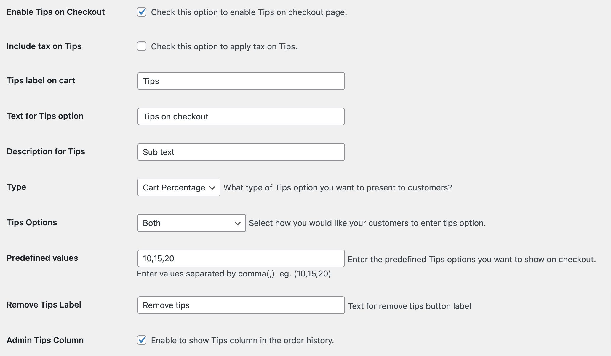 Adding a tip at checkout for orders provides an opportunity for your customers to reward you for the great service you offer. RestroPress Tips Extension enables you to add tips to an order. This plugin lets you add fields to the checkout page and accepts tips from the customer. It also increases the earning potential of your business while selling any product or item.