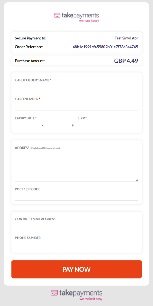 RestroPress TakePayments payment gateway allows you to accept credit card payments through your TakePayments account.
